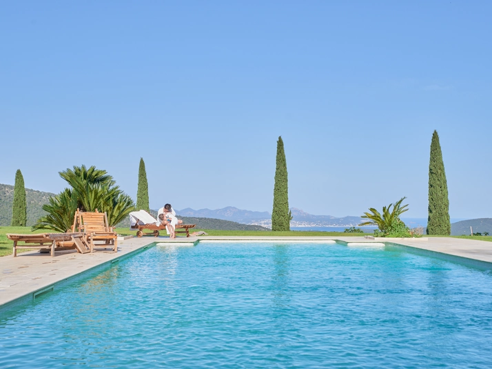 Cette bâtisse du XVIIIe siècle, entourée d’un jeune vignoble et de 350 hectares de nature préservée, évoque une grande maison aux accents méditerranéens, baignée de lumière et ouverte sur des vues imprenables.